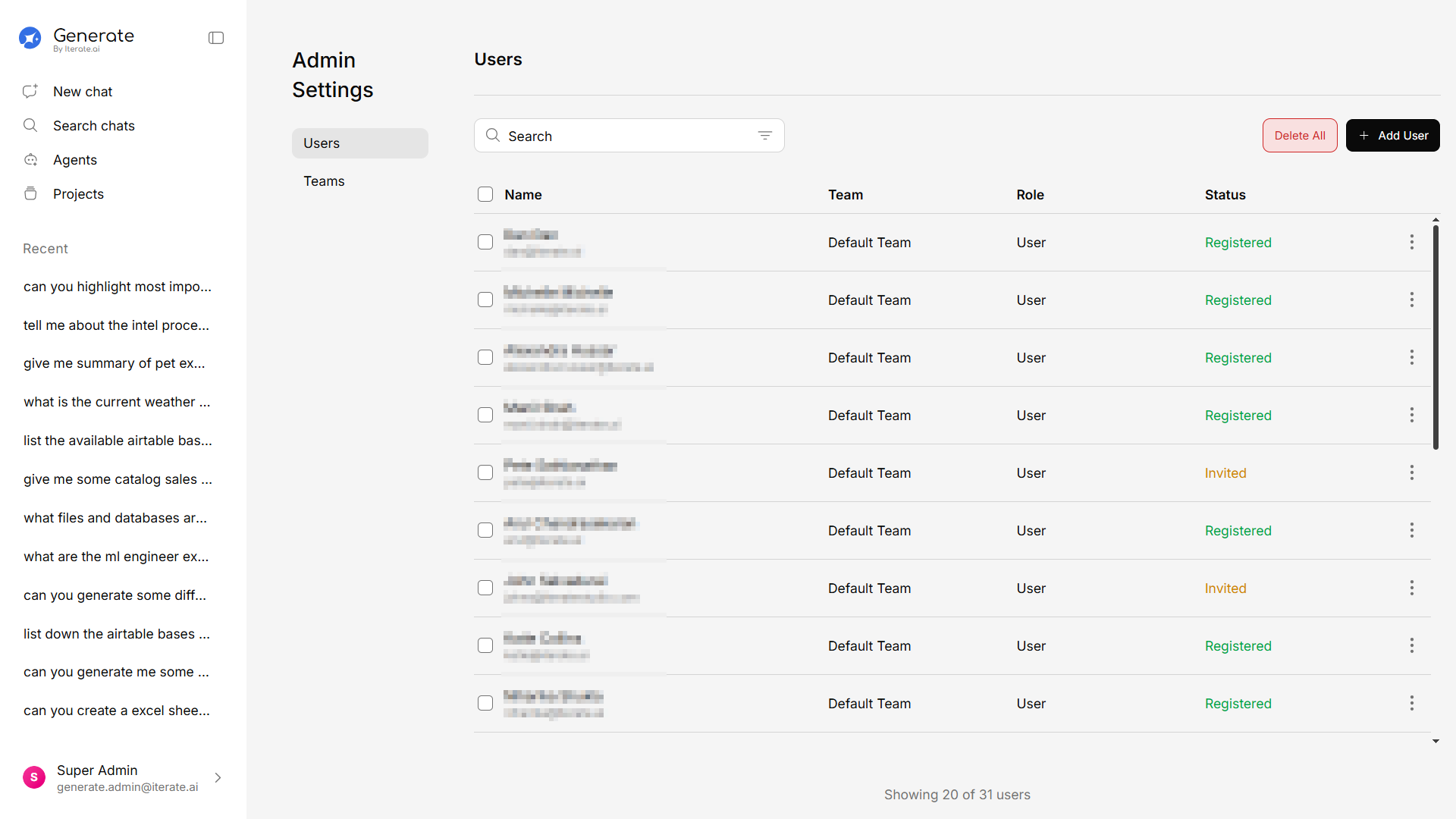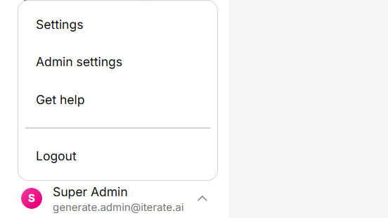 The Admin Panel is the control center for your organization’s Generate deployment. From here, administrators can manage users, teams, models, features, and platform settings.