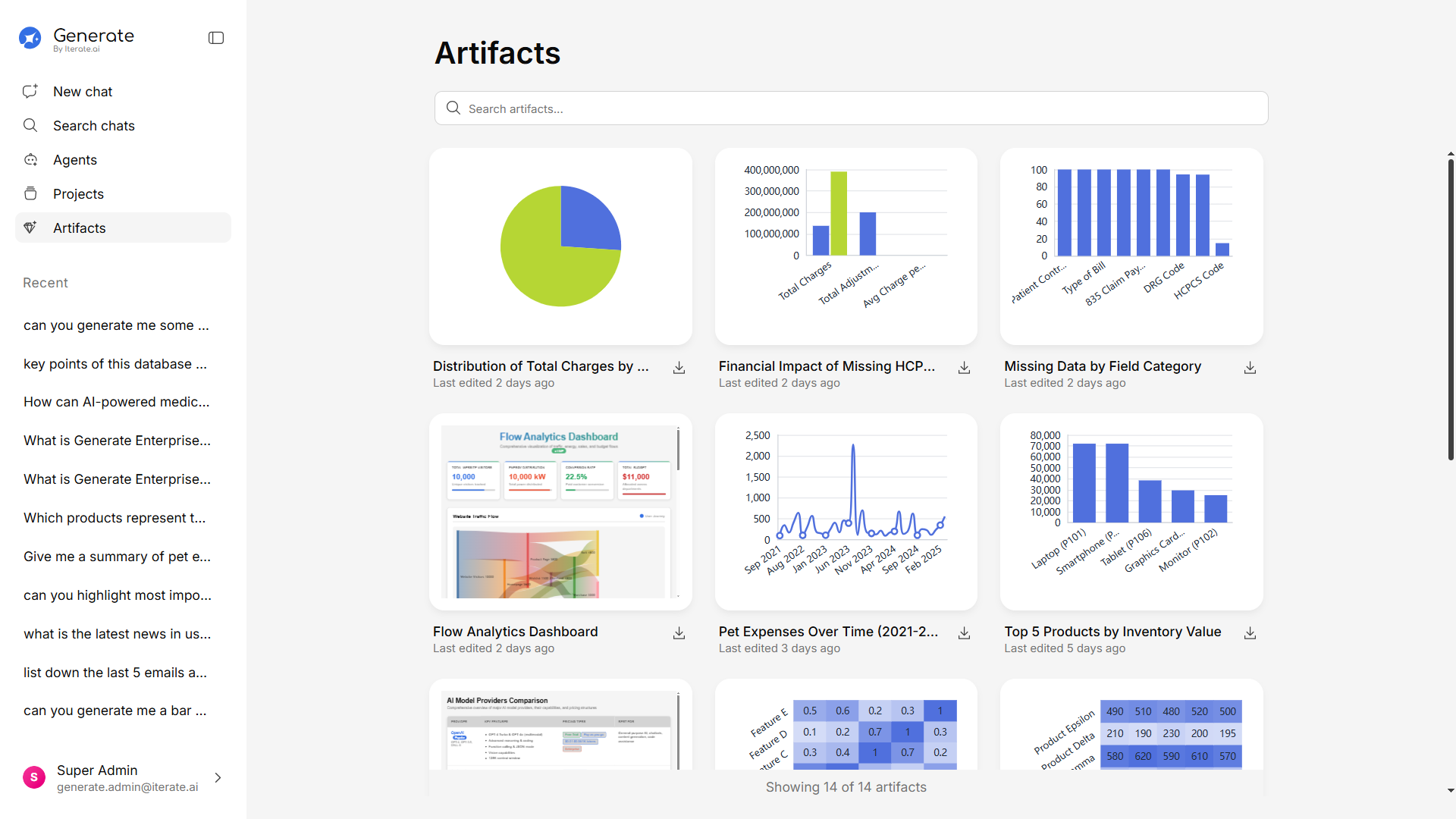 The Artifacts feature ensures you never lose track of important files and visualizations generated during your AI interactions, providing a professional, organized workspace for all your outputs.