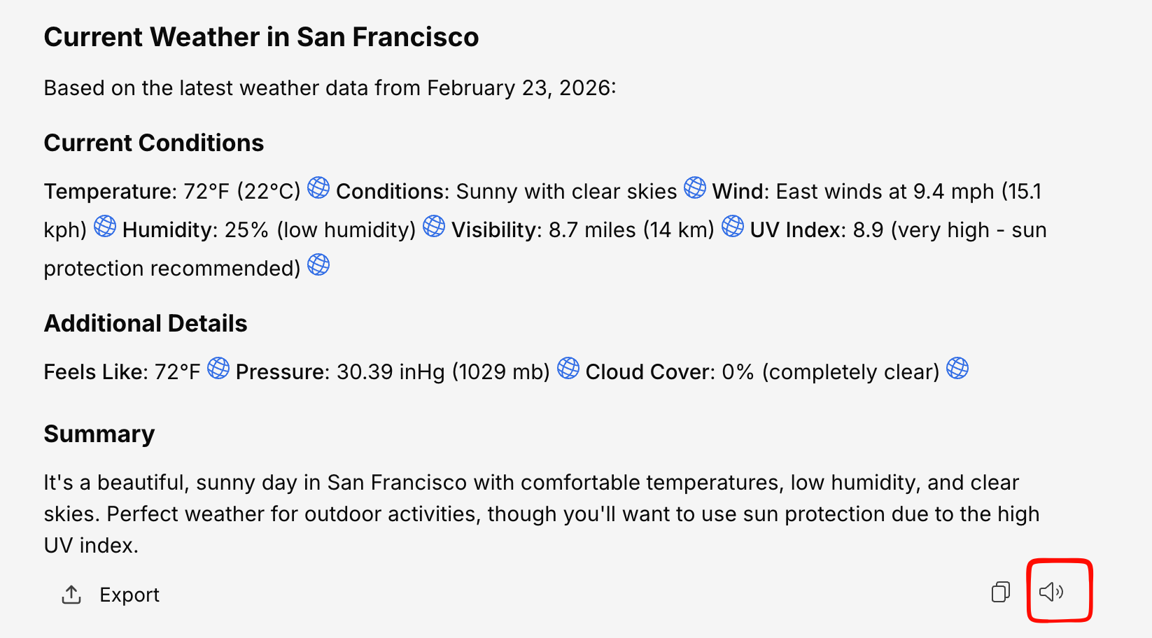 The Read Aloud feature converts AI responses to speech, so you can listen to answers instead of reading them. It’s great for multitasking, accessibility, or reviewing long responses.