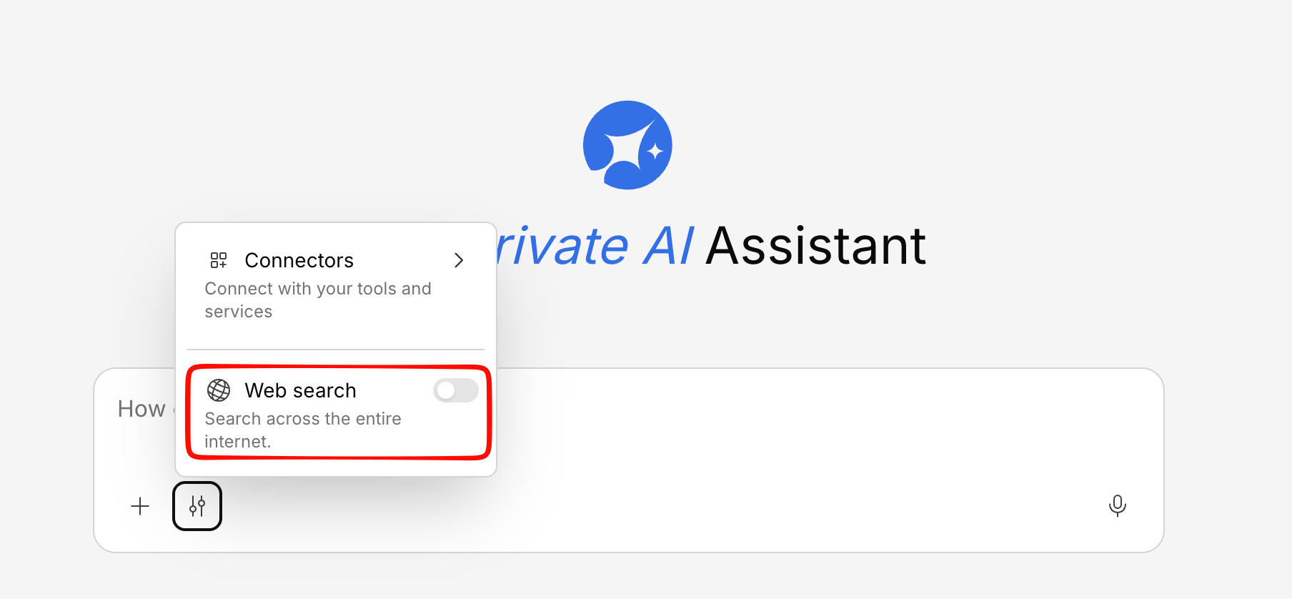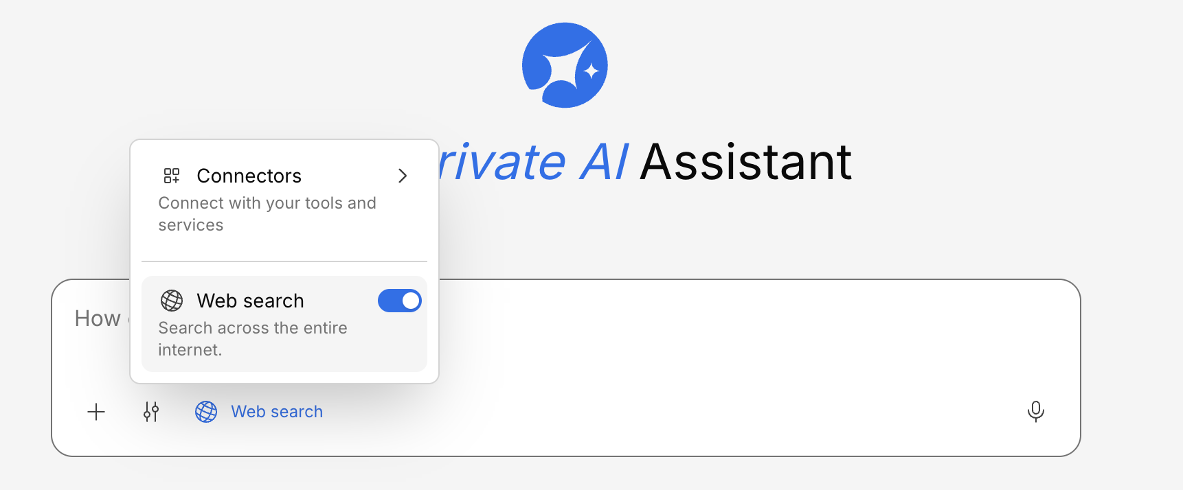Web search availability depends on your organization’s configuration. If you don’t see the web search option, contact your administrator.