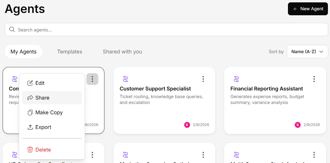 Agents shared with you appear under the Shared with You tab in the Agents section.