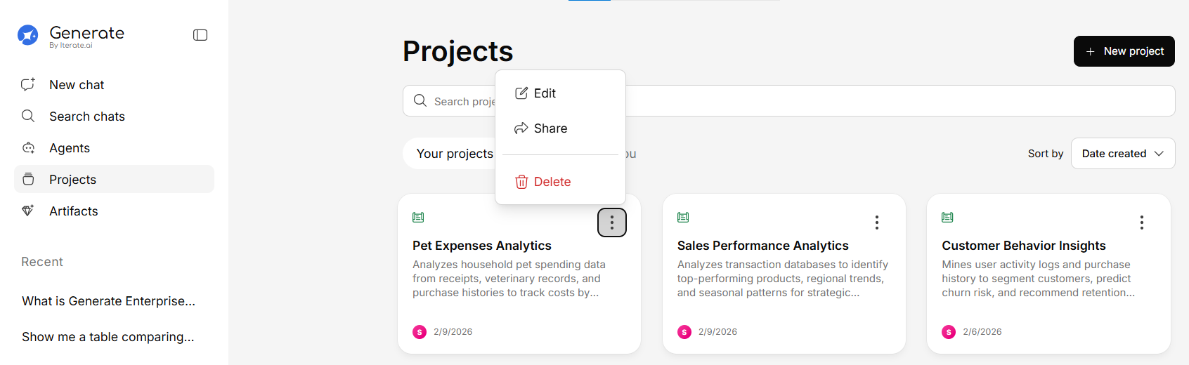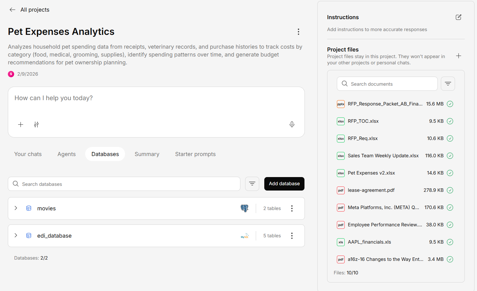 - Suggested questions — AI-generated questions based on project content
