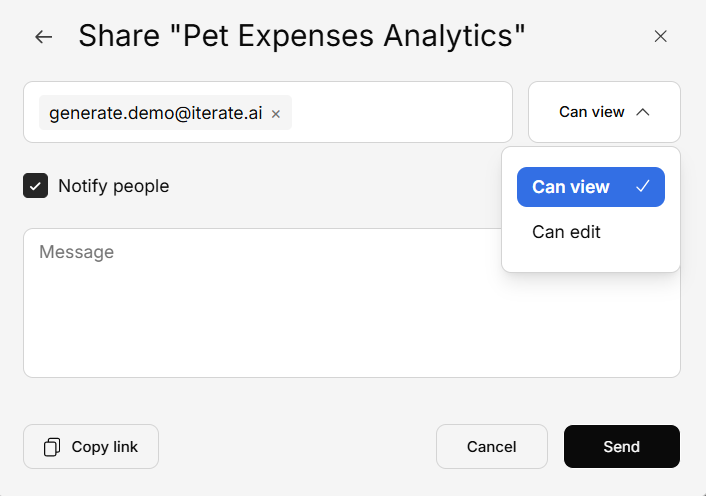- Change roles — Adjust viewer/editor permissions