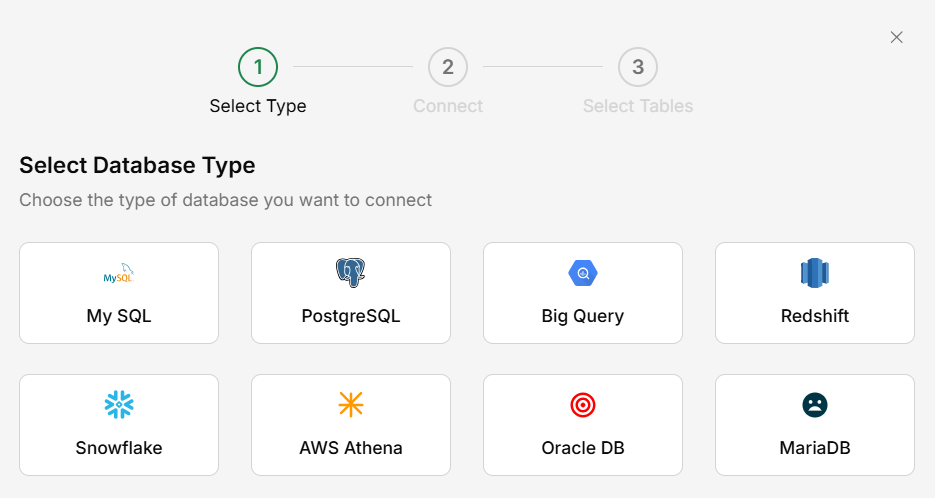 Database connections are typically set up by administrators. If you need access to a database, contact your admin to set up the connection.