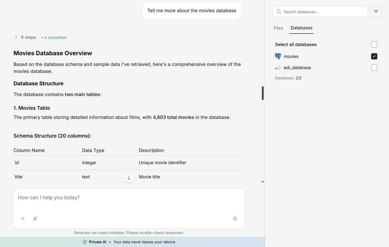 - Cross-reference — Combine live database data with your uploaded documents
