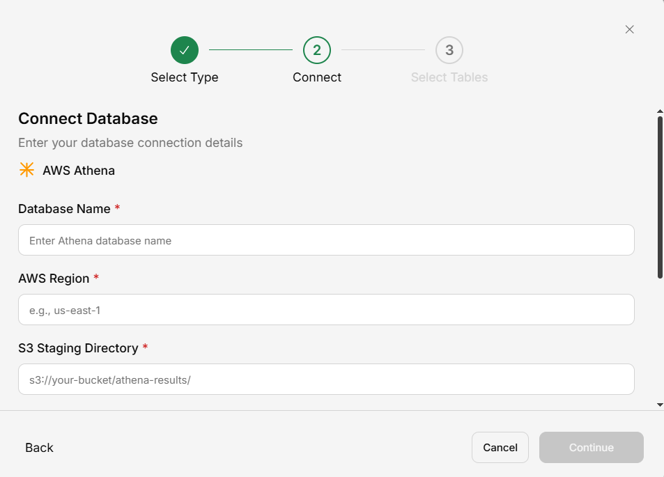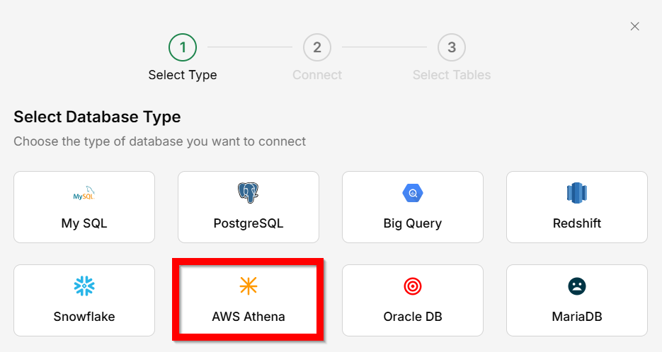 Athena as the database type.