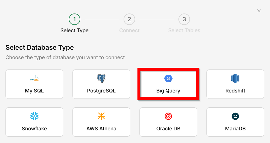 BigQuery as the database type.