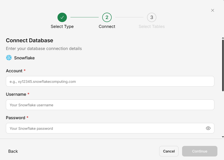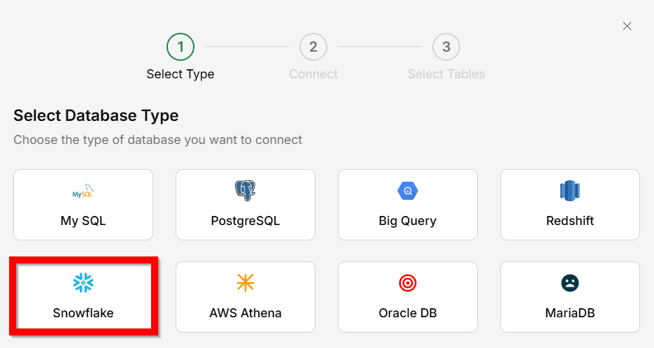 Snowflake as the database type.