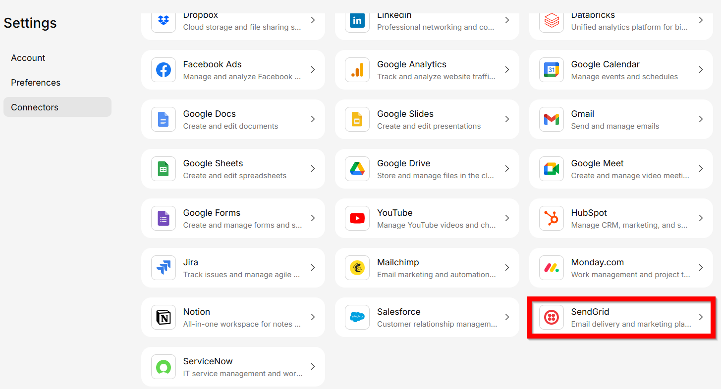 Connect SendGrid to access email delivery data and analytics in Generate.